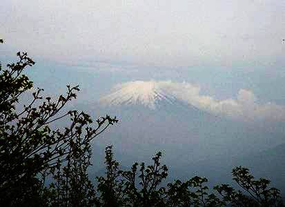 山頂にでると広く、西方に目を向ける と、何と富士山が浮んでいた。 気温が高く全く期待していなかった だけに、喜びも大きかった。 (11:15) |