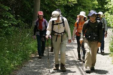 当初、混んでいて大部屋しかとれなかったが、 大変ラッキーなことに、個室キャンセルが出た とのこと。しかも2部屋! 梅雨入りの可能性が高く、敬遠した客がいた ようだ。しかしこれまでみたとおりのさわやかな 晴天。我々は晴れ男&晴れ女集団? |