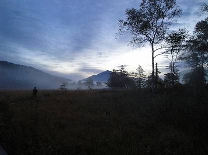 須藤さんは、早朝の霧の尾瀬の写真を撮るとかで4時にヘッドランプを着けて独りで出かけた。